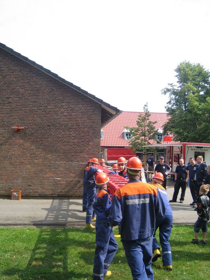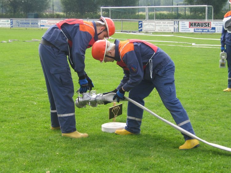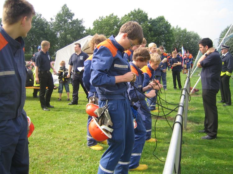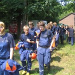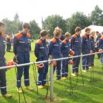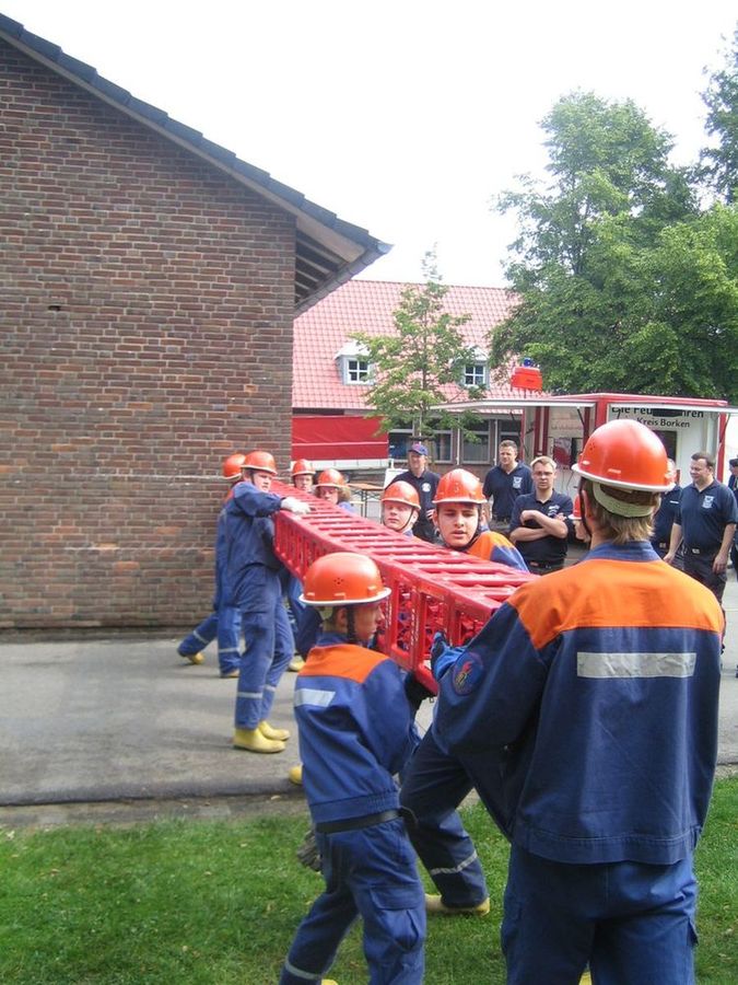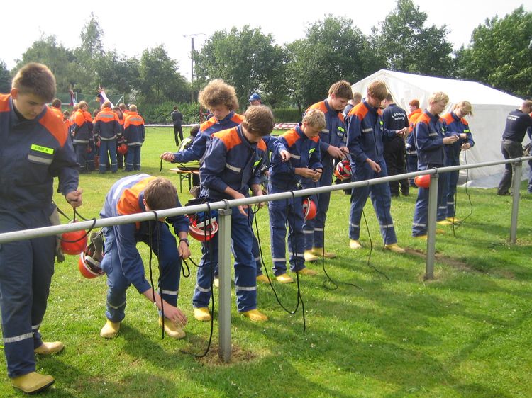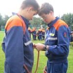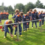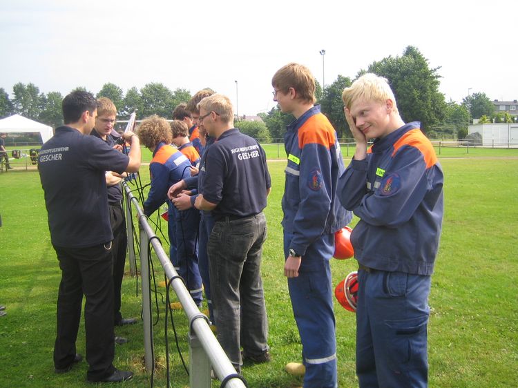 Die Jugendlichen mussten 5 verschiedene Disziplinen bewältigen: Den „Löschangriff“, „5 C-Längen“, „Knoten und Stiche“, „Staffellauf“ und einen Fragebogen mit 20 Fragen. “Das geht nur in Teamarbeit”, betonte Kreisjugendwart Ralf Gottlob. Außer der JF Gescher nahmen noch die Jugendfeuerwehren aus Bocholt, Suderwick, Südlohn, Raesfeld, Rhede, Vreden, Isselburg, Werth, Reken, Legden, Heiden, Gronau, und Epe teil. Die Wehren aus Borken und Velen waren sogar mit zwei Gruppen dabei. Insgesamt nahmen an der Veranstaltung rund 150 Jugendfeuerwehrleute und 40 Schiedsrichter teil.