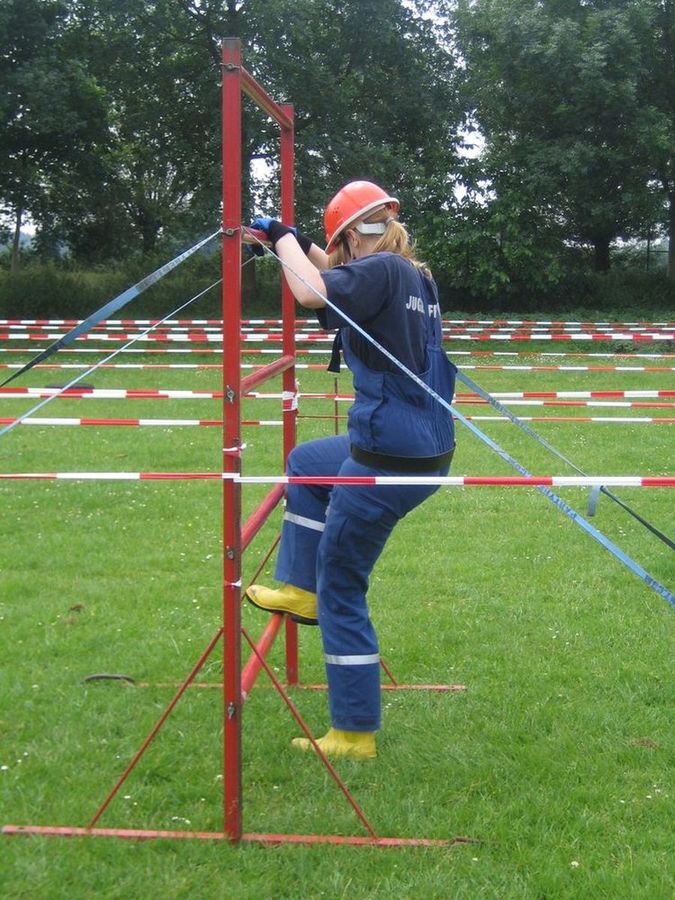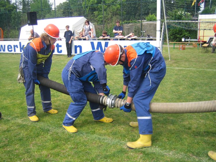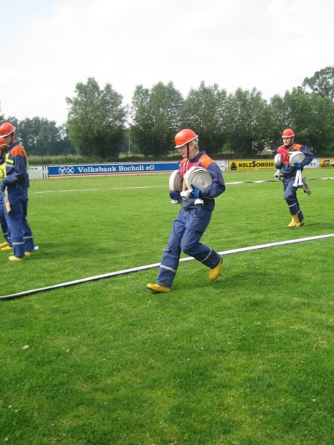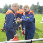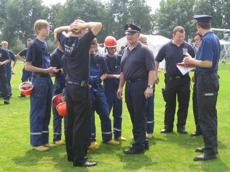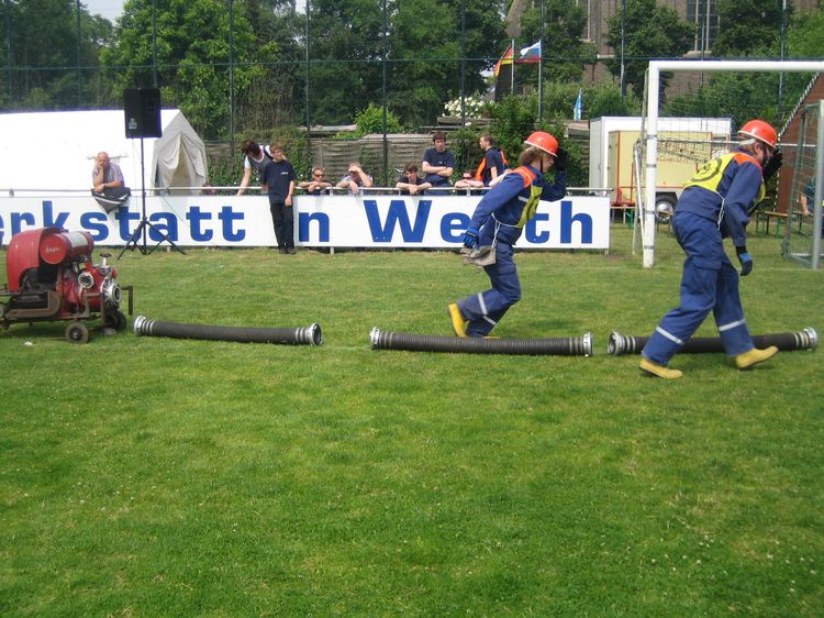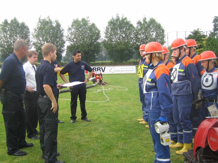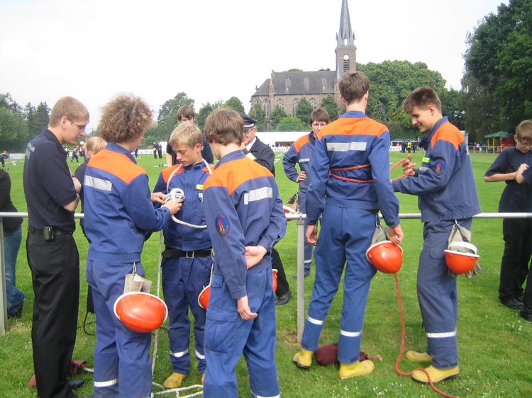 Die Jugendlichen mussten 5 verschiedene Disziplinen bewältigen: Den „Löschangriff“, „5 C-Längen“, „Knoten und Stiche“, „Staffellauf“ und einen Fragebogen mit 20 Fragen. “Das geht nur in Teamarbeit”, betonte Kreisjugendwart Ralf Gottlob. Außer der JF Gescher nahmen noch die Jugendfeuerwehren aus Bocholt, Suderwick, Südlohn, Raesfeld, Rhede, Vreden, Isselburg, Werth, Reken, Legden, Heiden, Gronau, und Epe teil. Die Wehren aus Borken und Velen waren sogar mit zwei Gruppen dabei. Insgesamt nahmen an der Veranstaltung rund 150 Jugendfeuerwehrleute und 40 Schiedsrichter teil.