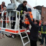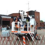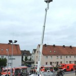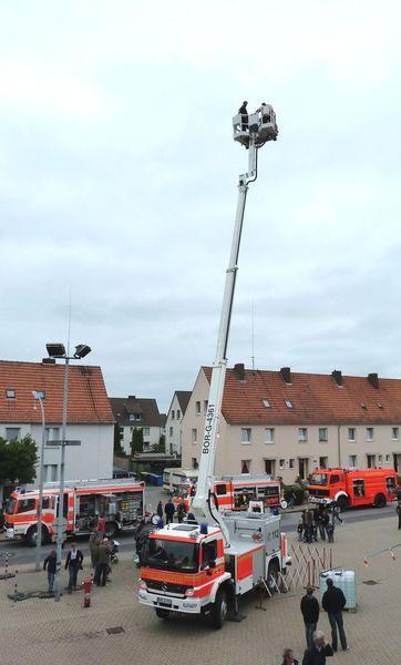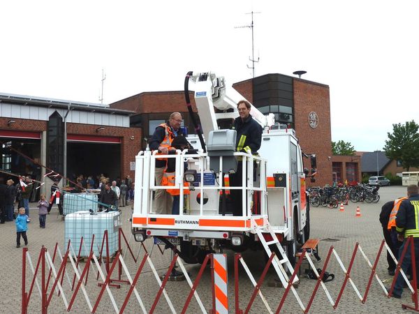 Während des Tages der offenen Tür hatten sich die Kameraden der Feuerwehr etwas Besonderes überlegt: Die Bevölkerung hatte die Gelegenheit einmal mit dem neuen Teleskopmast der Feuerwehr in die Höhe zu fahren. Gleichzeitig diente dieses Hochfahren auch einem gutem Zweck, denn die Einnahmen dieser Fahrten sollten komplett gespendet werden.