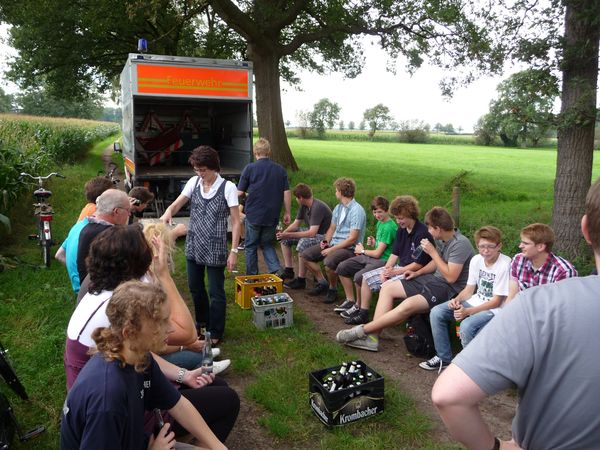 Zur Pättkesfahrt traf sich die Jugendfeuerwehr am vergangen Samstag bei schönem Wetter. Zusammen mit den Eltern ging es Richtung Nordvelen zur ersten Pause. Nach einer kleinen Getränkepause ging es weiter durch Tungerloh-Pröbsting bis nach Estern. Auch hier wurde eine Pause eingeschlagen.