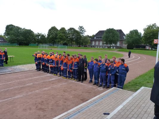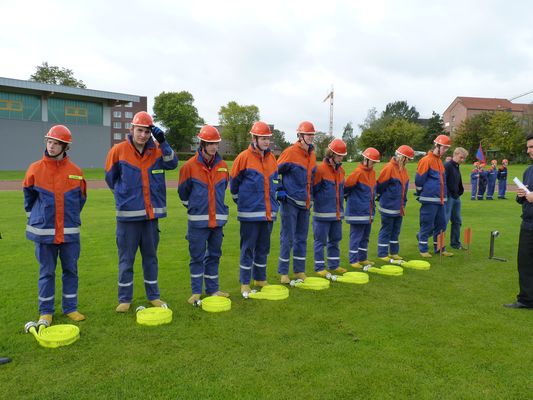Nach wochenlangem Üben, auch während der Sommerferien, ging es für 9 Mitglieder der Jugendfeuerwehr am Samstag Morgen nach Münster zur Abnahme des wichtigsten Abzeichen der Jugendfeuerwehr, der Leistungsspange.