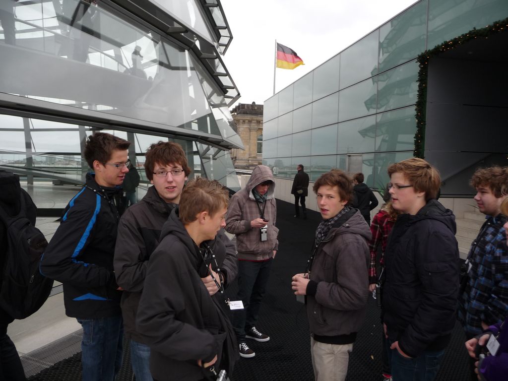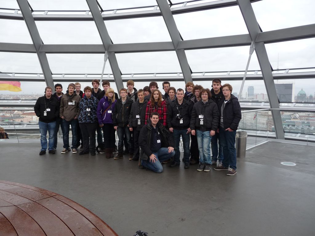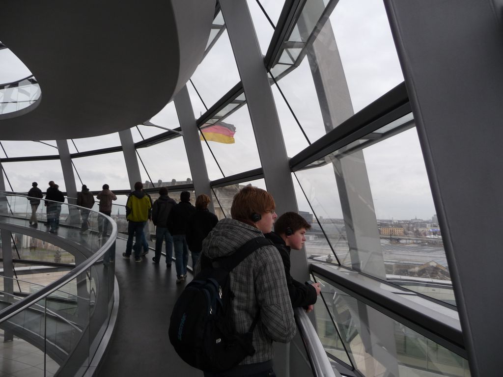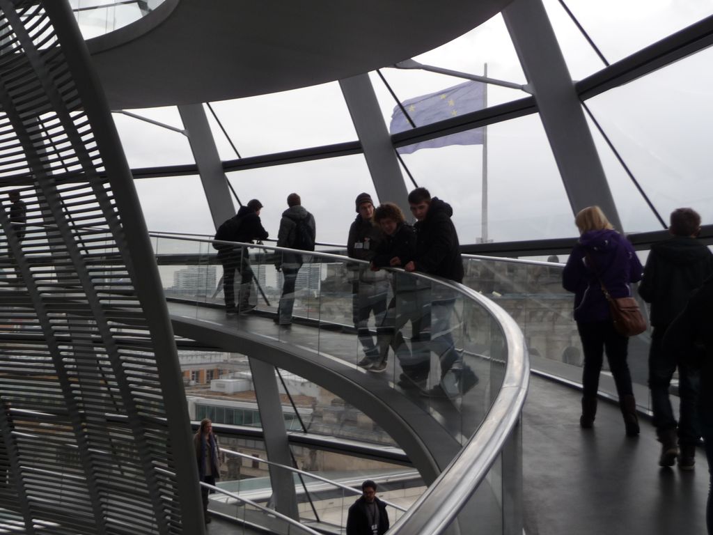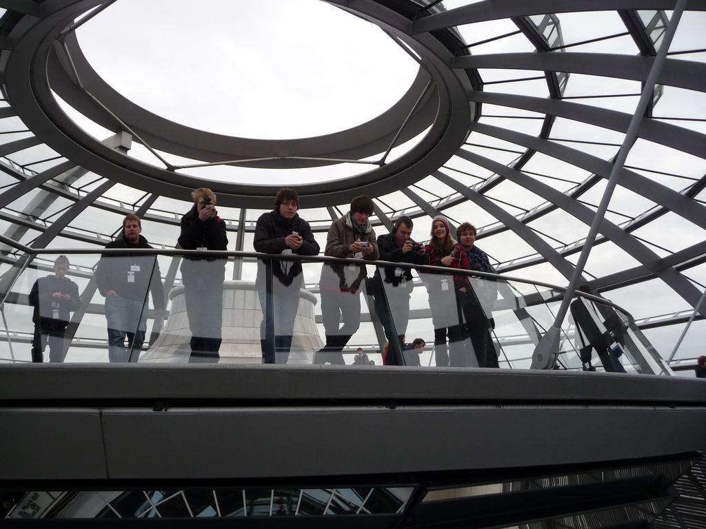 Auch am Sonntag befanden wir uns noch immer in Berlin. Nach dem Frühstück und dem Ausmelden aus dem Hotel ging es noch einmal zu Fuß los. Erstes Ziel war der Reichstag. Nach einem ausführlichen Sicherheitscheck ging es hinauf zur Kuppel. Dort konnten wir noch einmal den Blick über Berlin schweifen lassen und noch letzte Gruppenbilder machen.