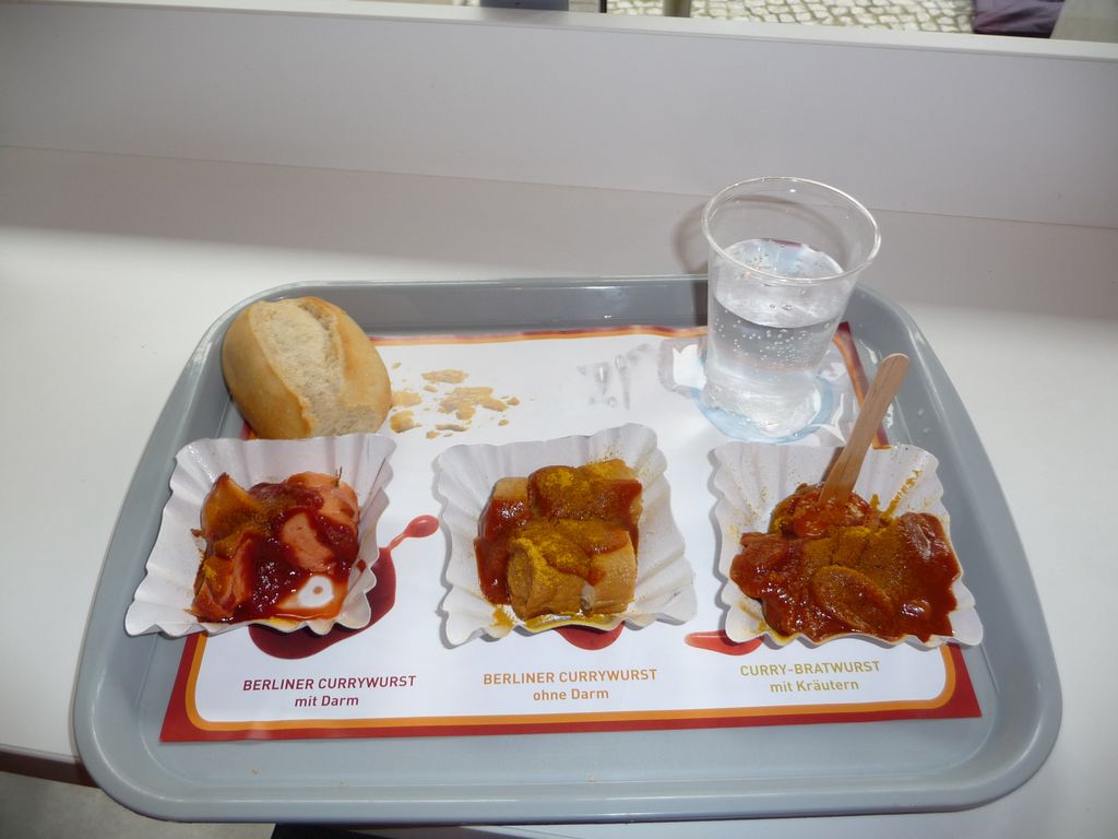 Nachdem alle wieder unten waren ging es zu Fuß weiter. So konnte unterwegs noch das letzte Geld in Souvenirs investiert werden. Ziel war das Currywurstmuseum, wo man standesgemäß noch eine Currywurst gegessen hat. Dann ging es zum letzten Mal mit der U-/S-Bahn zurück zum Hotel, wo wir wieder den Bus bestiegen.