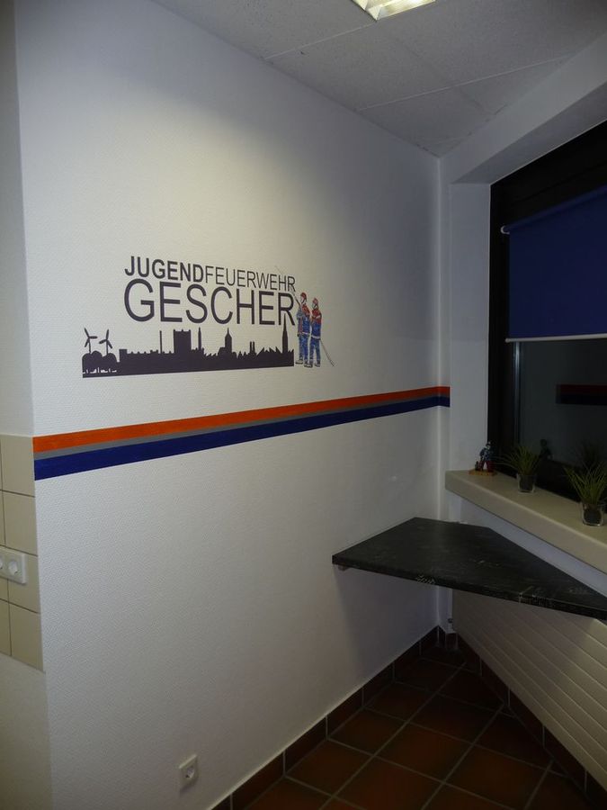 update: das Wandtattoo mit dem JF Gescher Logo ist angebracht und eine Sitzecke ist hinzugekommen.