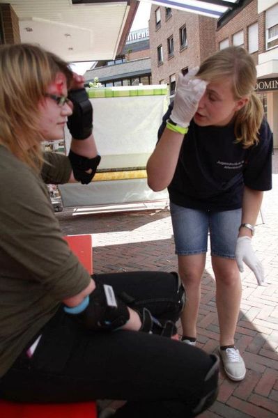 Am 07.07. ging es für einige Jugendfeuerwehrmitglieder nach Borken. Hier galt es das DRK zu unterstützen. In Borken wurde der Landesnachweises des DRK NRW ausgetragen. Dabei stellte die Jugendfeuerwehr Gescher Gruppenbetreuer ab, die die Wettkampfmannschaften von einer Station zur nächsten Station leiteten und unterwegs darauf achtete, dass es keinen unerlaubten Informationsaustausch innerhalb verschiedener Gruppen gab. Zudem beteiligte sich ein Mitglied der Jugendfeuerwehr noch bei der realistischen Unfalldarstellung.