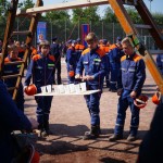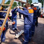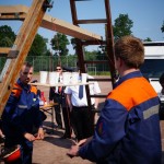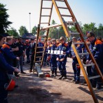 Dann ging es zum Pokalspiel dem einzigen richtigen Wettbewerb gegen alle anderen Feuerwehren innerhalb des Leistungsnachweises. Bei dem für die Jugendfeuerwehren vorher unbekannten Wettbewerb ging es diesmal darum ein Brett mit gefüllten Wasserbechern über 4 Personen an 4 Schnüren auf eine bestimte Höhe zu ziehen. Hier belegte die Gruppe 1 einen 3. Platz, während die JF Gronau diesen Wettbewerb gewann.