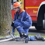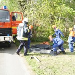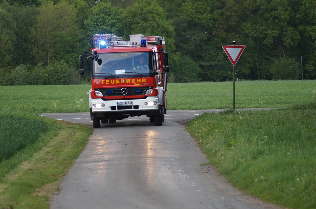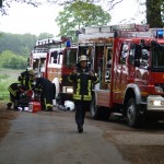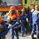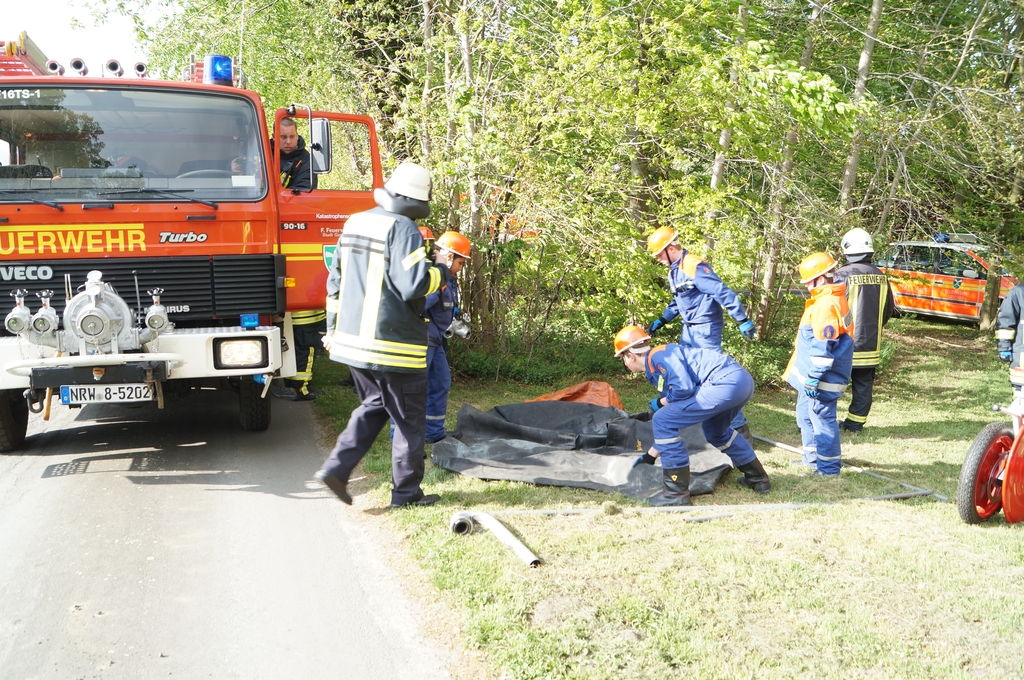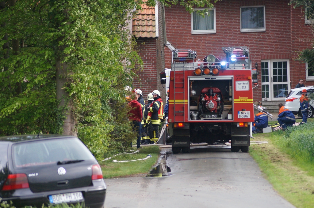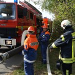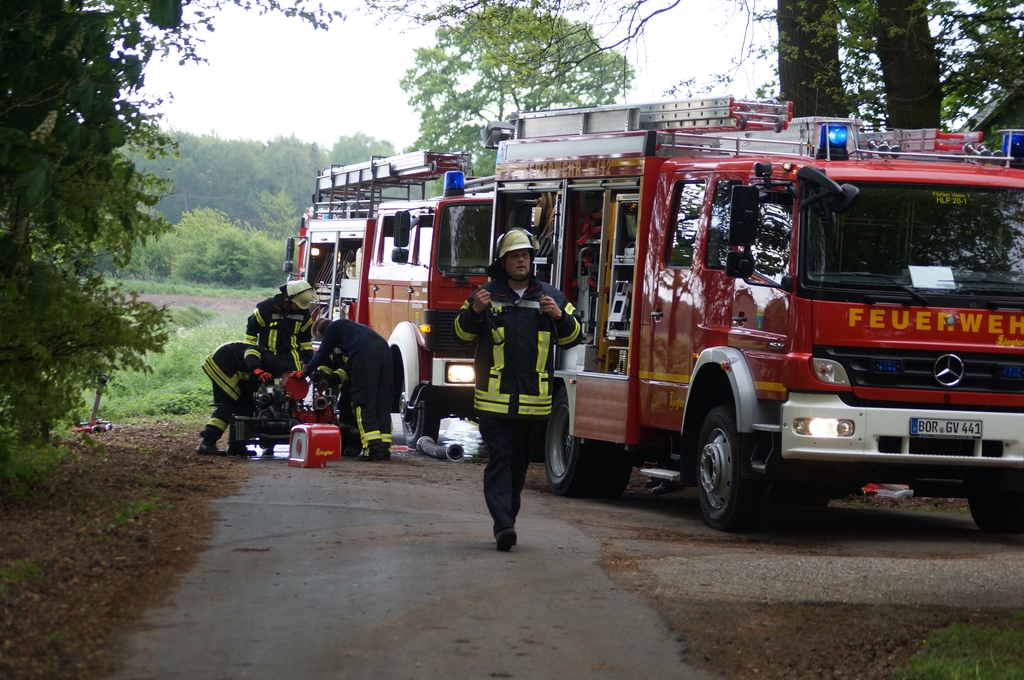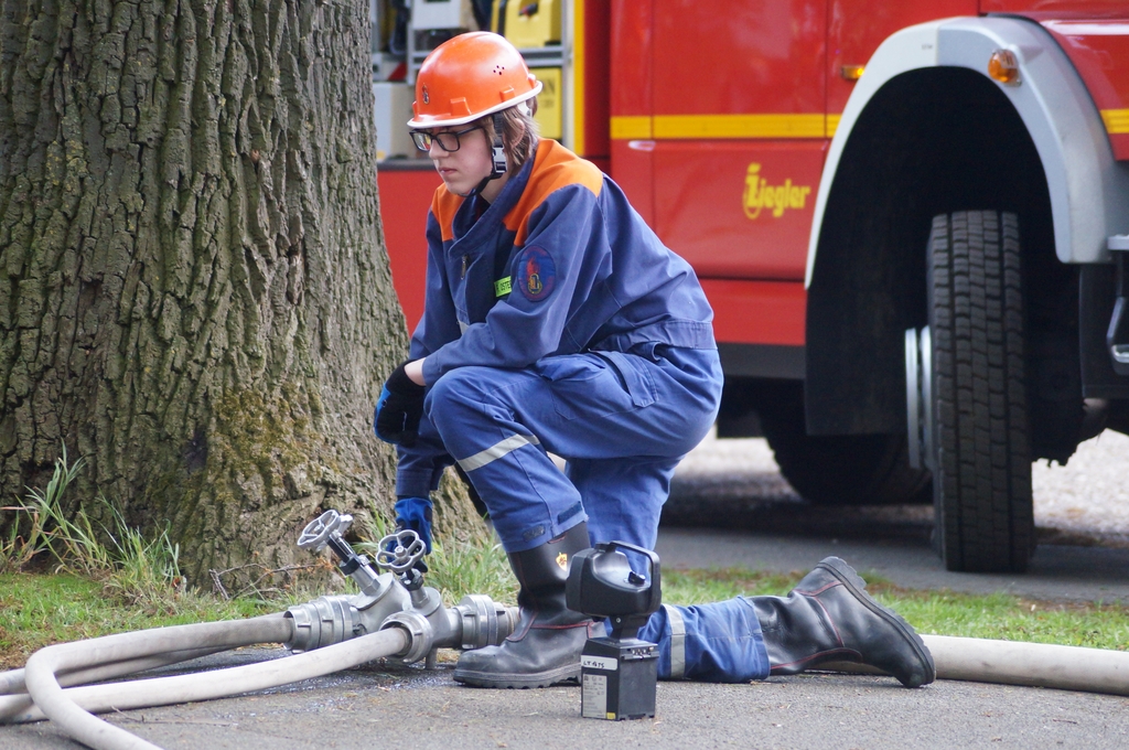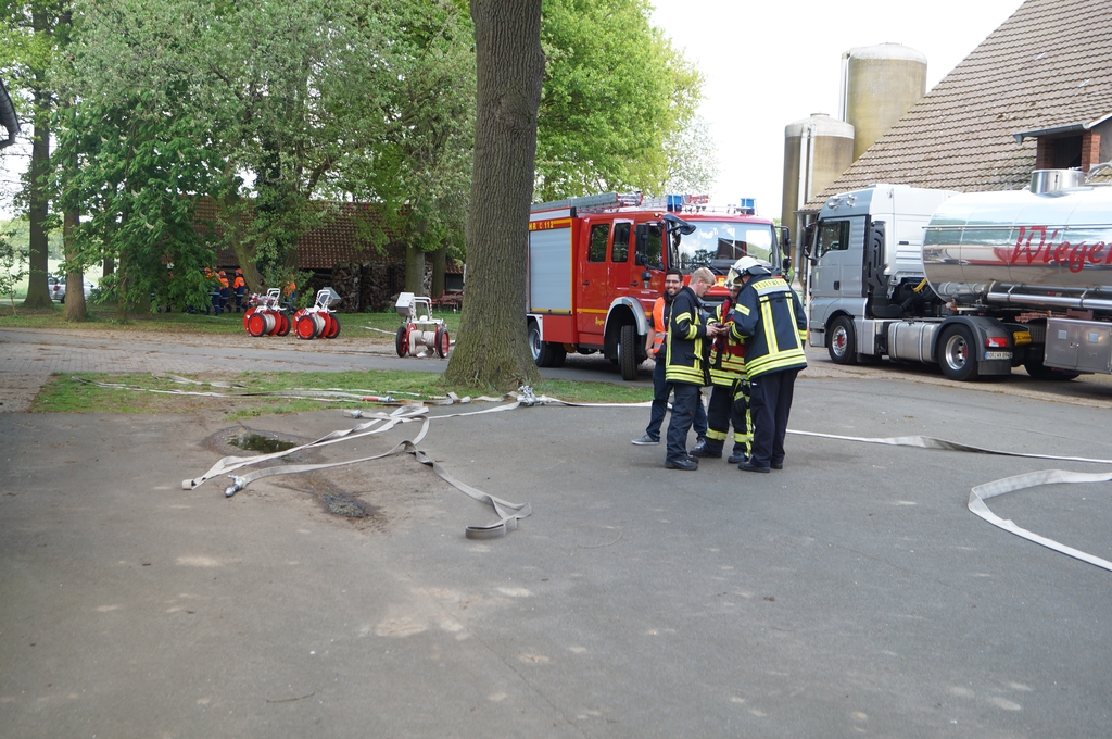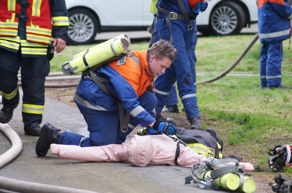 Die Jugendfeuerwehr Velen hatte am vergangenen Wochenende einen sogenannten BF-Tag (einen Tag an dem die Jugendfeuerwehr eine Schicht einer Berufsfeuerwehr nachspielt und auch zu Übungseinsätzen alarmiert wird). Einer dieser Übungseinsätze war auf dem Hof Hagmann in Nordvelen. Da hier nur begrenzt Wasser zur Verfügung steht wurde die Jugendfeuerwehr Gescher in diese Übung mit eingeplant. Im Vorfeld wussten nur die Jugendwarte in Gescher über diese Übung Bescheid, und überraschten die Jugendlichen mit einer „Alarmierung“ über eine Instant Messaging App zu einem Einsatz. Dabei wurde entsprechend genügend Zeit gegeben, so dass die Jugendlichen sicher zum Gerätehaus kommen konnten. Spontan fanden genügend Jugendliche Zeit und konnten so die Fahrzeuge komplett besetzen. Vor Ort stellte die Jugendfeuerwehr Gescher die Wasserversorgung über einen Wassersack und einem Pendelverkehr mit einem TLF sicher. Zeitgleich wurden in einem Stall zwei Personen vermisst. Die Personensuche mit Atemschutzattrappen wurde sogleich durchgeführt und es konnten die vermissten Personen schnell gefunden werden. Die Jugendwarte waren anschließend mit der für die Jugendlichen überraschenden Zusammenarbeit beider Jugendfeuerwehren sehr zufrieden.