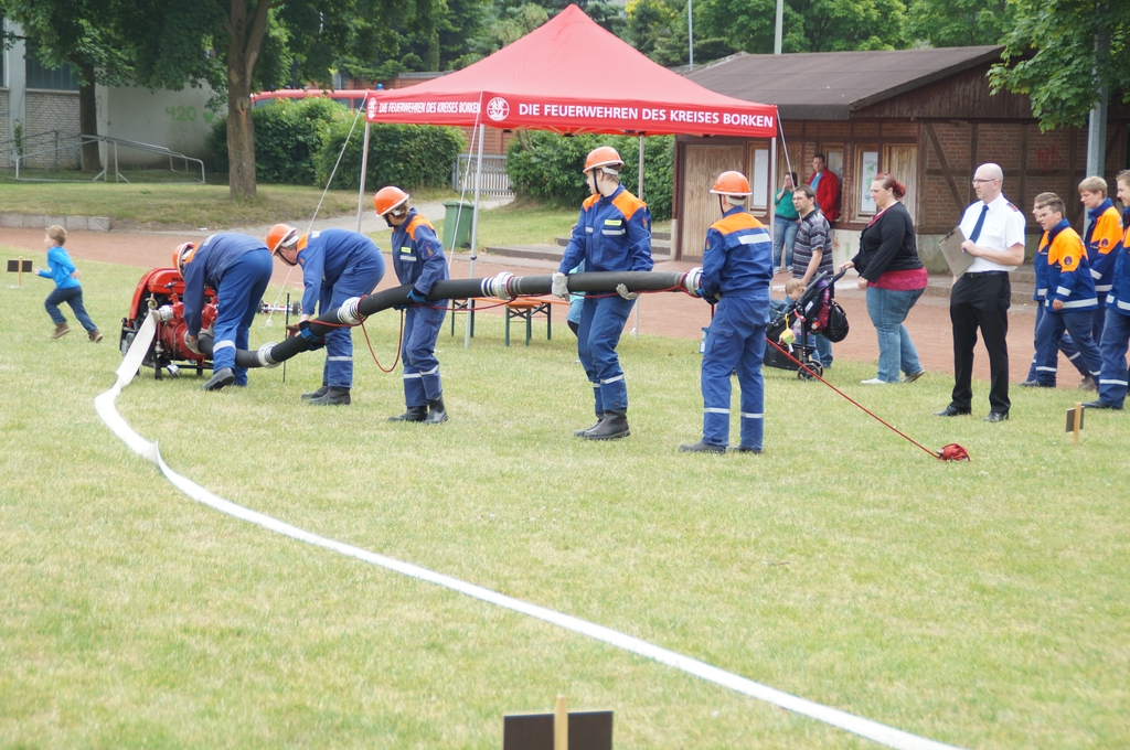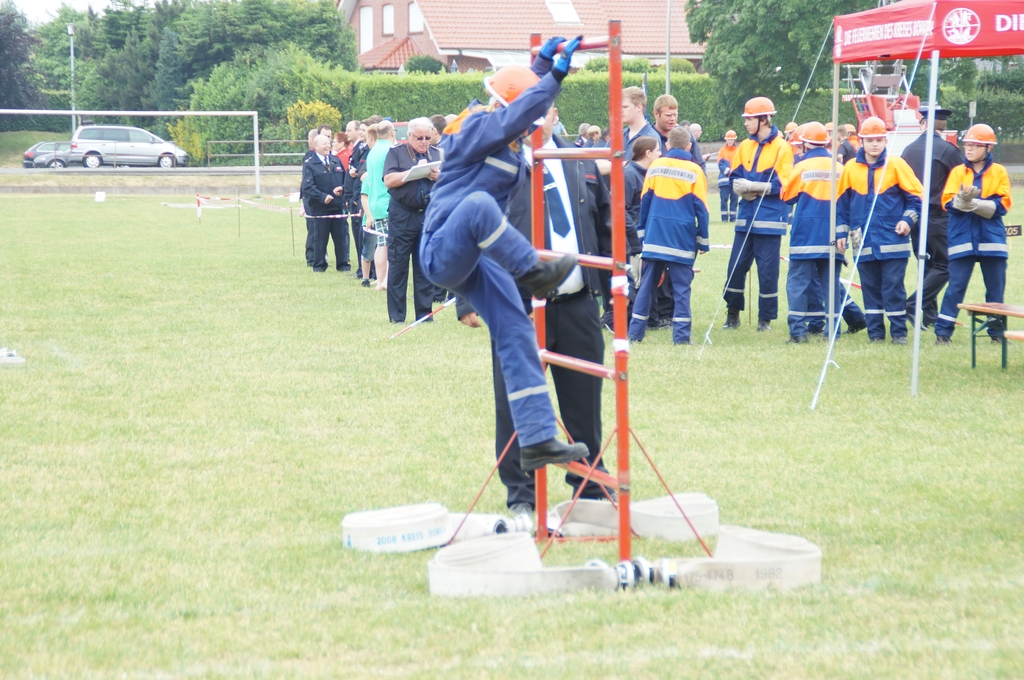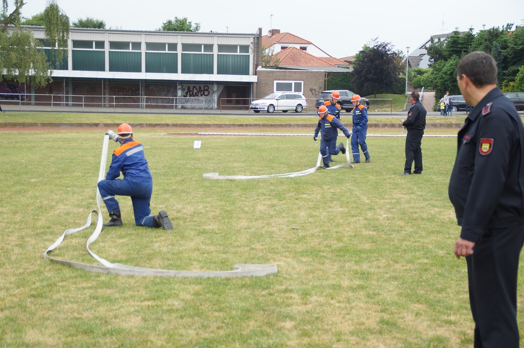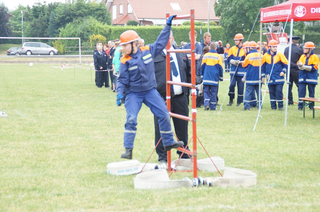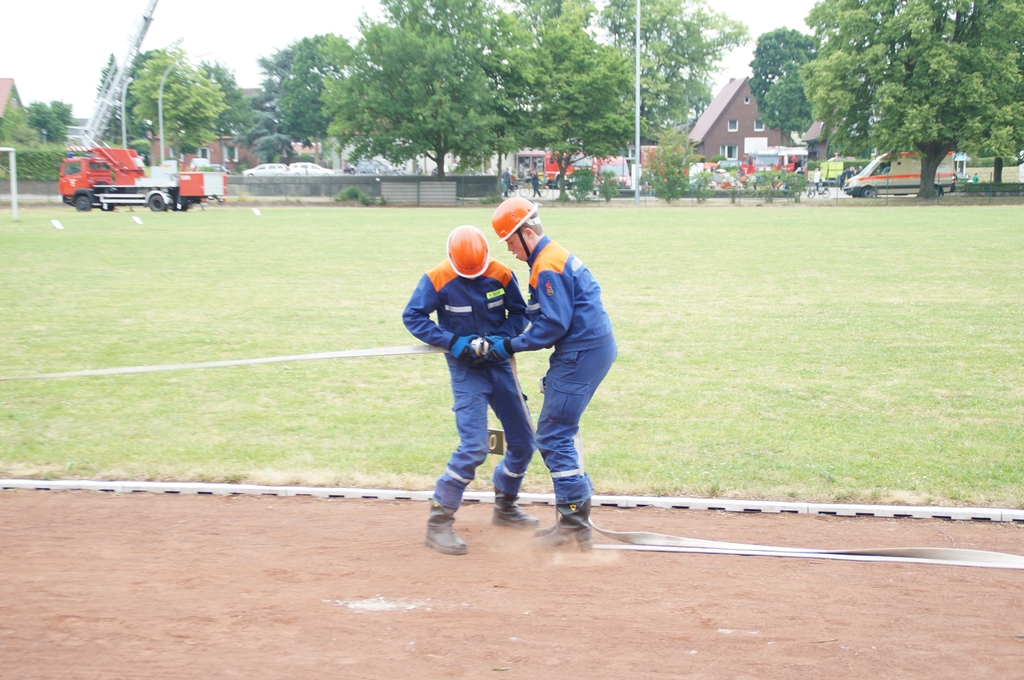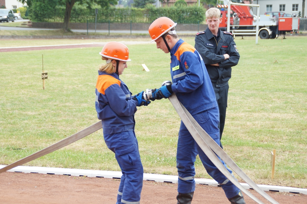Erfolgreich abgeschnitten hat die Jugendfeuerwehr Gescher beim Kreisleistungsnachweis in Vreden. Alle zwei Jahre zeigen die Jugendfeuerwehren des Kreises Borken ihr Können bei Disziplinen wie Löschangriff, Staffellauf mit Hindernissen, 5 C-Längen, theoretischer Teil und Knoten und Stiche. Hinzu kommt der Landratspokal, der immer mit einem vorher unbekannten Spiel unter den Jugendfeuerwehren ausgespielt wird.
