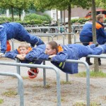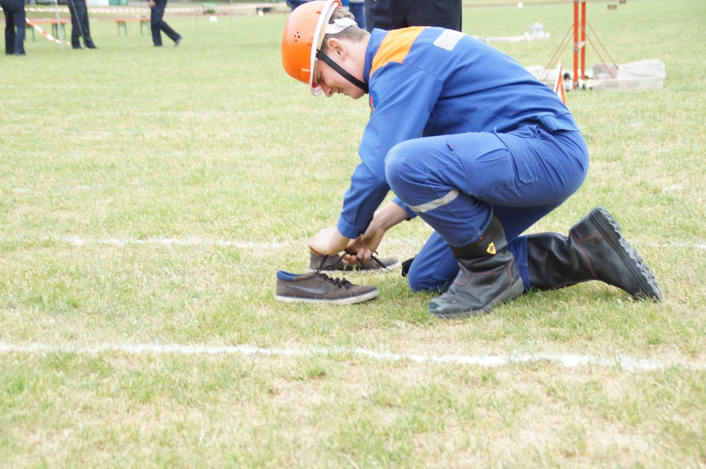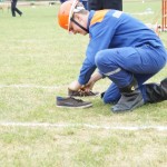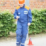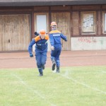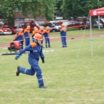 Nach der offiziellen Begrüßung startete man mit dem Staffellauf. So mußte eine abgesteckte Strecke mit insgesamt 9 Läufern absolviert werden. Dabei ging es für eine Person über eine Leiterwand, eine Person musste ein Warndreieck aufstellen und eine Person musste Schnürsenkel zubinden. Die anderen 6 Kameraden absolvierten eine reine Laufstrecke.