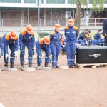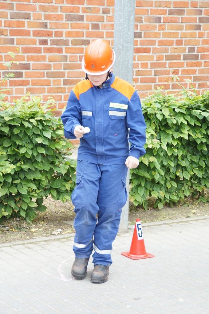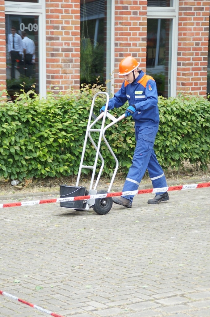Nach der Mittagspause ging es dann weiter mit dem Spiel für den Landratspokal. Hier musste ein Eimer mit Wasser per Sackkarre über einen Hindernisparcours transportiert werden um dann schließlich mit einer Kübelspritze drei Bälle von Pylonen zu spritzen. Unterwegs mussten dann Aufgaben wie Eier auf Löffel transportieren und Geld zählen bewältigt werden. Gewonnen hat hier am Ende die Jugendfeuerwehr Vreden.