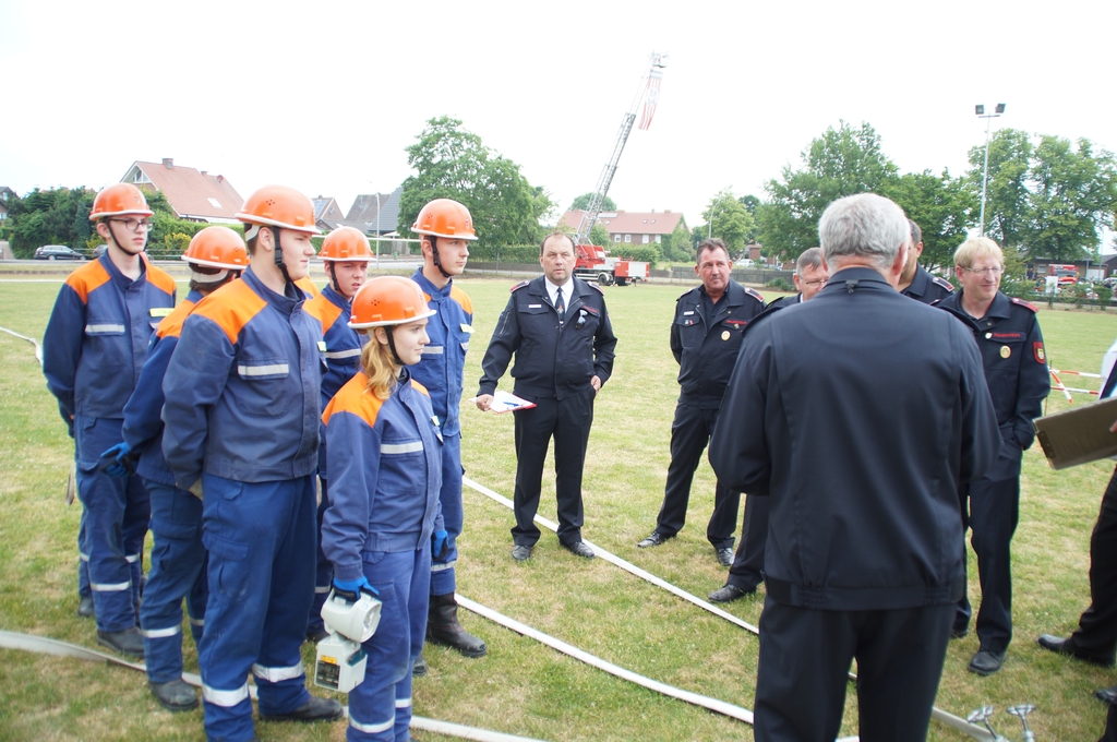 Am Ende des Leistungsnachweises zeigten sich die Jugendwarte mit der Leistung der Jugendfeuerwehr Gescher sehr zufrieden.