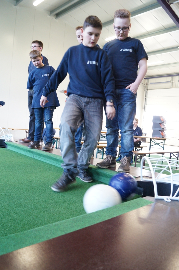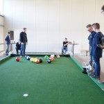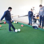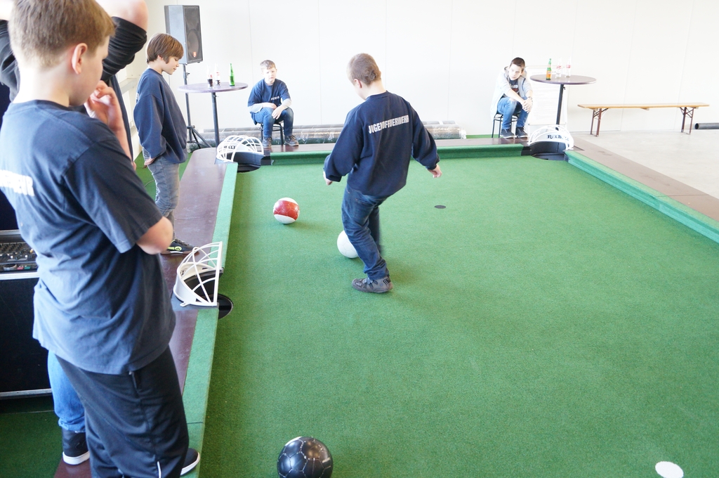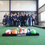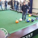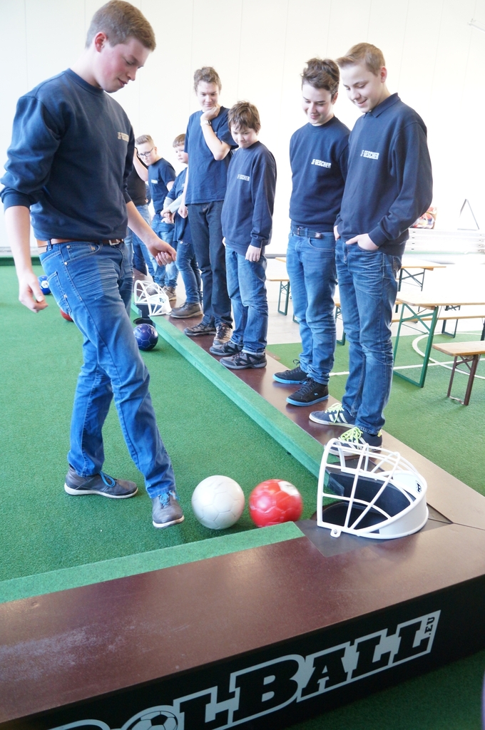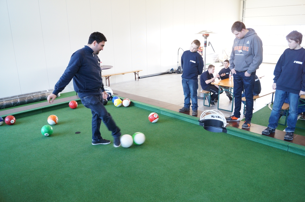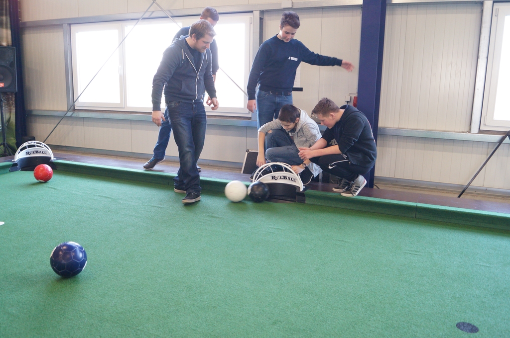 Beim letzten Dienstnachmittag stand der Spaß im Vordergrund. Ziel war ein sportlicher Wettkampf der besonderen Art in Reken, nämlich Poolball. Poolball ist im Prinzip Billard als Fußballspiel. Auch hier gilt es 8 Kugeln über eine weiße Kugel in eines von 6 Löchern zu versenken. Anstatt ein Qeue musste man aber die weiße Kugel mit dem Fuß spielen und die Kugeln an sich waren Fußbällen. Der Erfinder und Hersteller von Poolball kommt aus Reken.