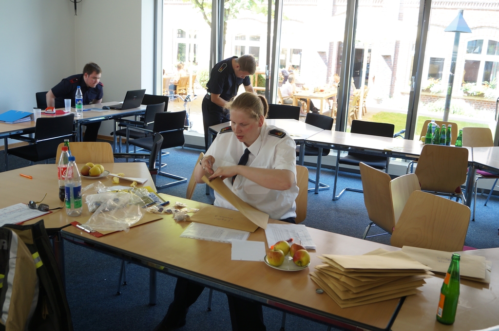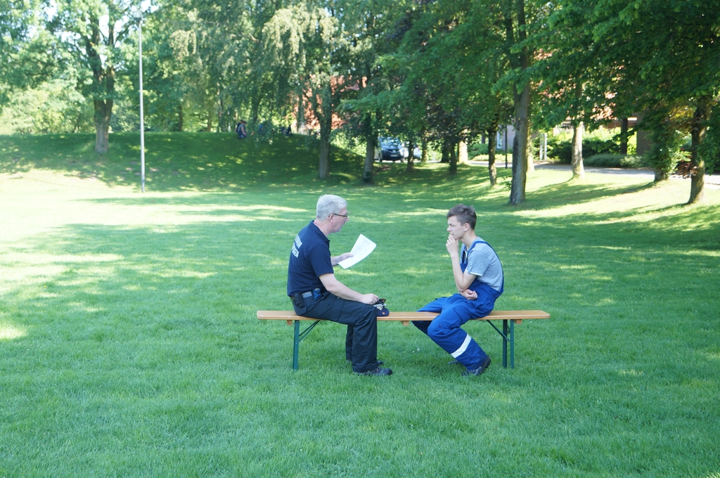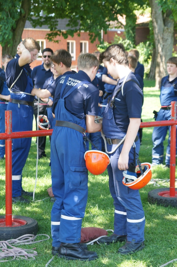 sk – Gescher. Strahlender Sonnenschein und Temperaturen um die 30 Grad. Bessere Voraussetzungen hätte es gar nicht geben können. Die Jugendfeuerwehren des Kreises Borken waren zu Gast in der Glockenstadt, um die begehrte Auszeichnung „Jugendflamme Stufe II und III“ zu erlangen. Vorweg: alle Jugendlichen erreichten ihr Ziel.