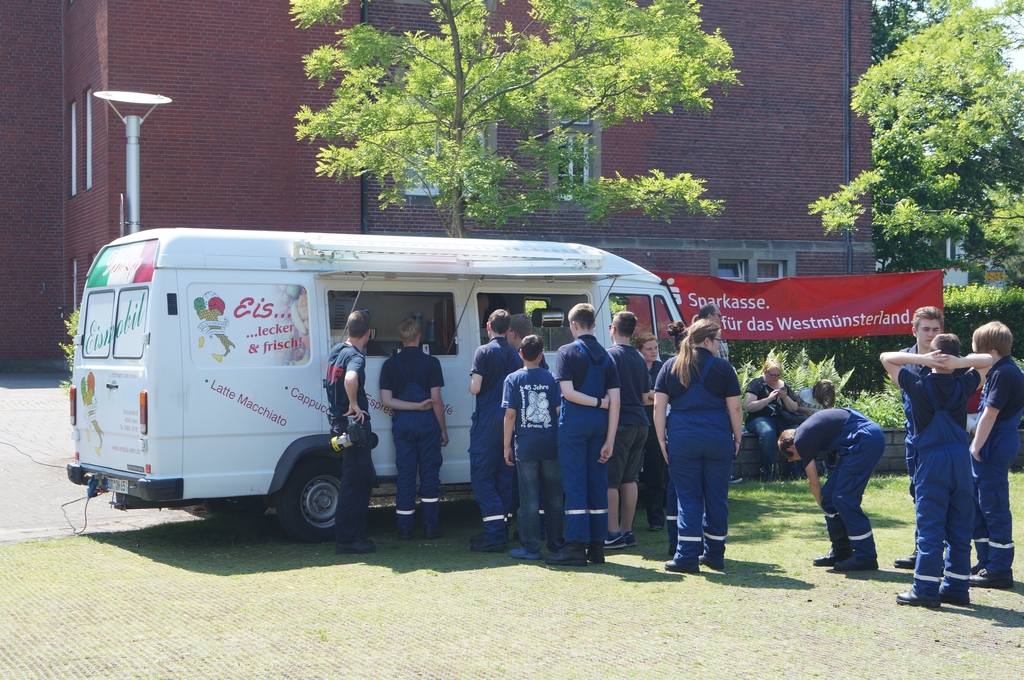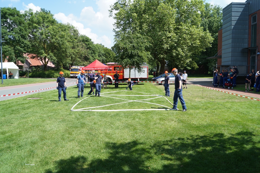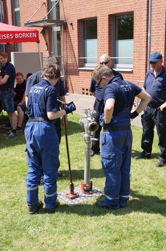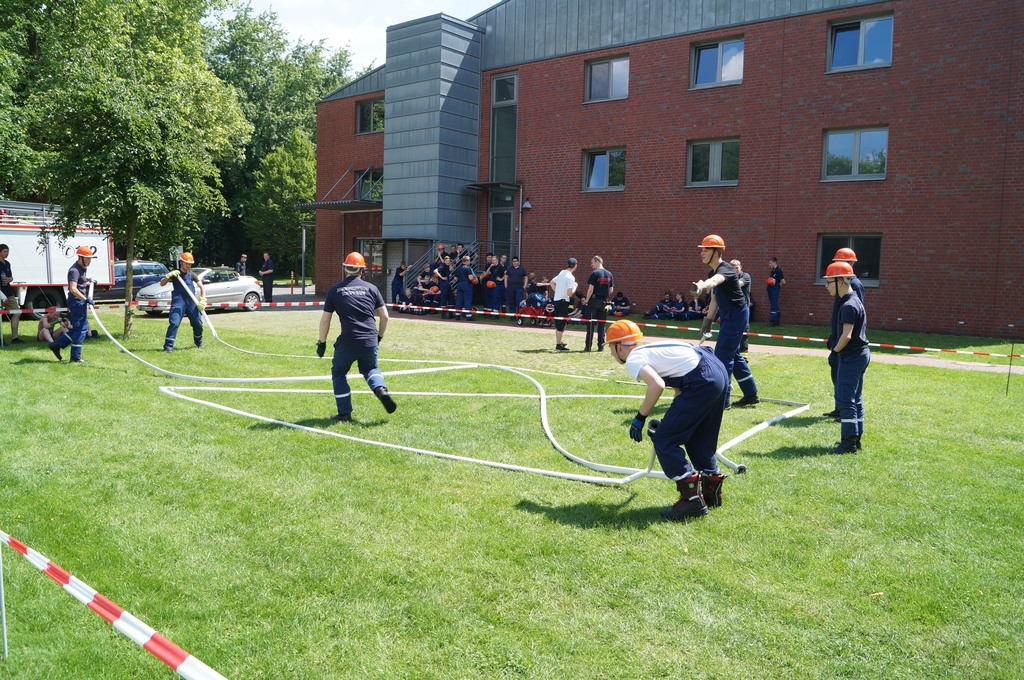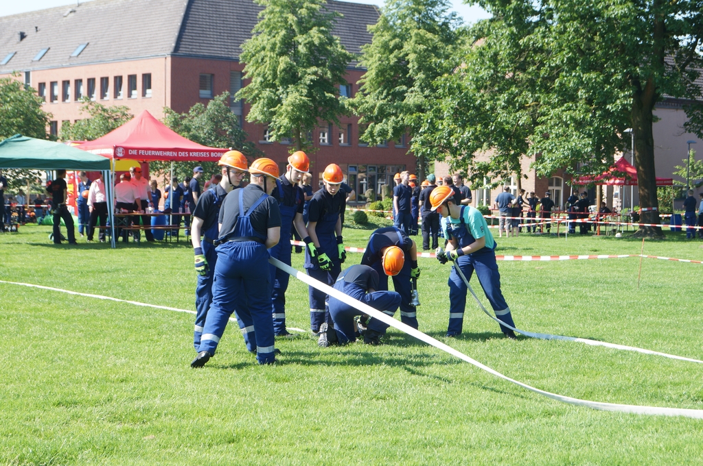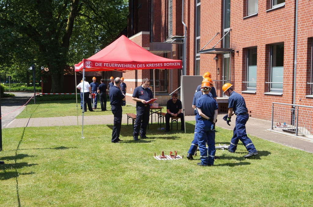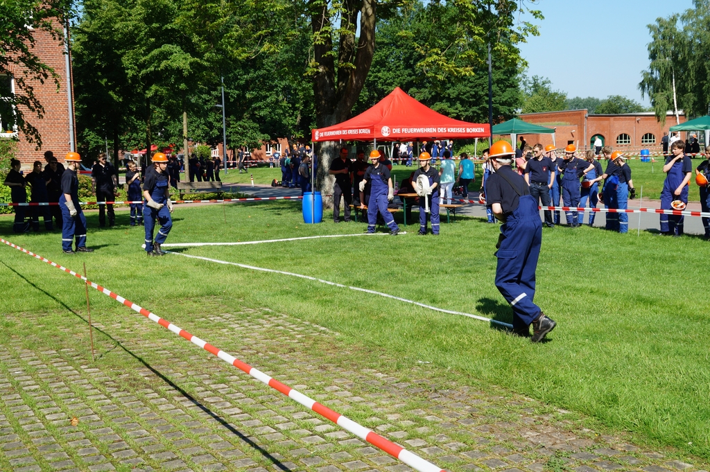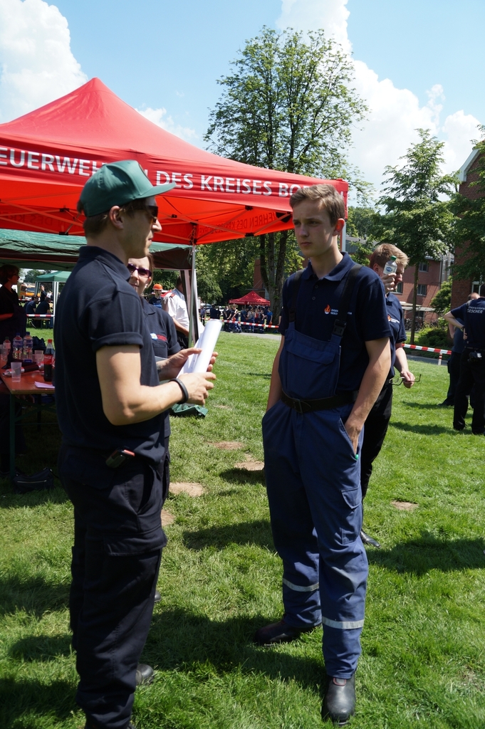Kreisjugendfeuerwehrwart Ralf Gottlob aus Borken konnte zu dieser Großveranstaltung rund 200 Jungen und Mädchen aus 14 Jugendfeuerwehren des Kreises Borken nebst ihren Ausbildern begrüßen. Lediglich die JF Isselburg musste ihr Kommen aus Gründen des Hochwassereinsatzes absagen. Aufgrund des besonderen Ereignisses entschied man sich, der JF Isselburg die Möglichkeit einer Nachprüfung zu geben.
