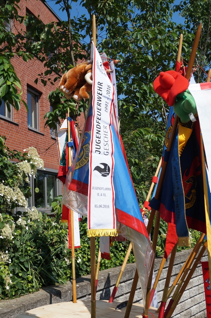 Das die Jugendfeuerwehren nicht im Verborgenen agieren, zeigte die große Besucherzahl, die sich bereits in den Mittagsstunden einfand. Und denen wurde einigen geboten: Mit Feuereifer waren die Jungen und Mädchen bei der Sache, als es galt Schläuche zu verlegen, Knoten und Stiche zu zeigen oder die Funktion eines Hydranten zu erklären. Das Üben und die Mühen „unter Wettkampfcharakter“ wurden gelohnt: alle Jugendlichen bestanden die Prüfungen. Unter dem Applaus der Besucher, der Betreuer und zahlreicher Gäste konnte 150 Jungen und Mädchen die ersehnte „Jugendflamme“ überreicht werden.