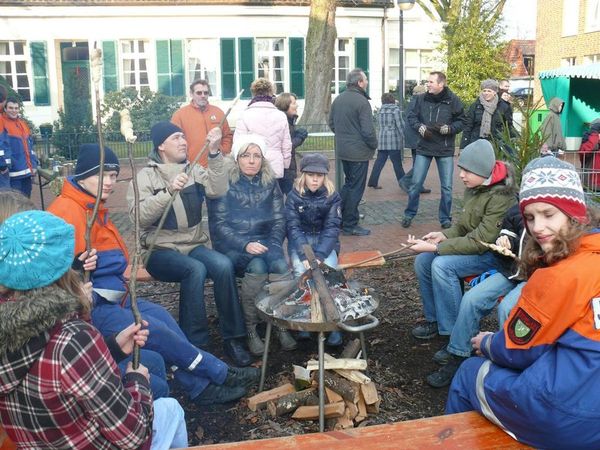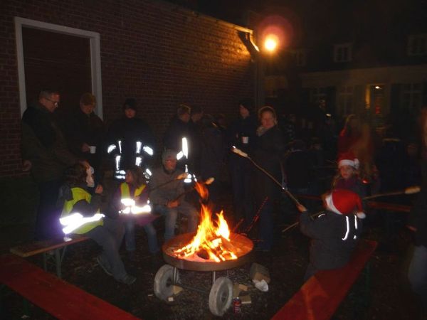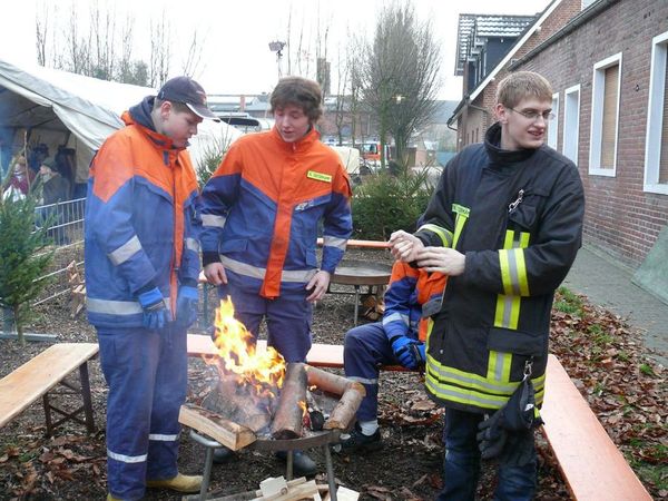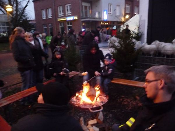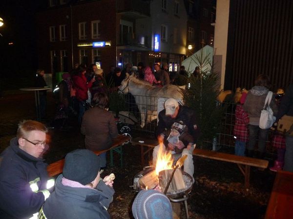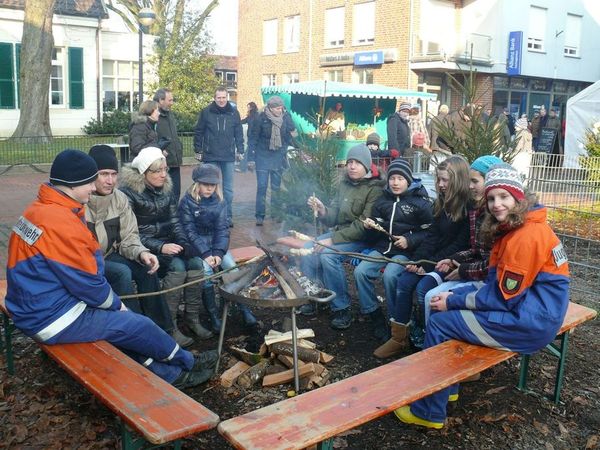 Stark vertreten auf dem Weihnachtsmarkt war jetzt die Jugendfeuerwehr Gescher. Bei weihnachtlich kalten Temperaturen luden unsere Feuerstellen für das Stockbrot zum Verweilen an der Lebendkrippe ein. Neben dem Stockbrot wurden auch Waffeln und Kakao angeboten. Zudem hatte die Jugendfeuerwehr kräftig Holzkerzen gebastelt (siehe auch http://www.jugendfeuerwehr-gescher.de/?p=661) und so fanden auch diese kleinen Kunstwerke Absatz.