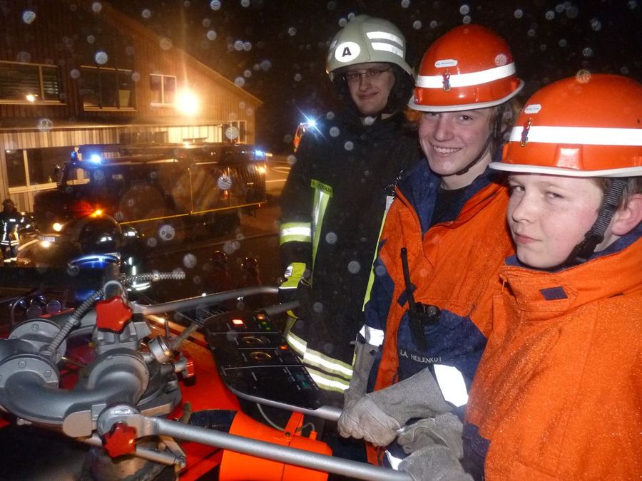 Nach Rettung der Personen, hatten die Kameraden der JF Coesfeld dann noch Gelegenheit den Gescharaner Wasserwerfer auszuprobieren.